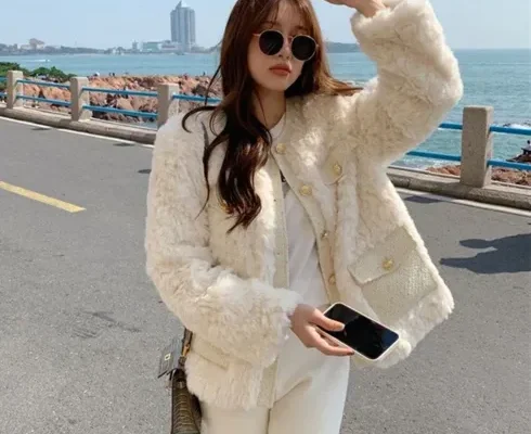 크롭무스탕 여성용 따뜻한 두꺼운 부클자켓